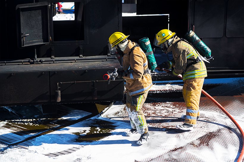 Basic and advanced firefighting techniques including live fire training for industrial fire scenarios.